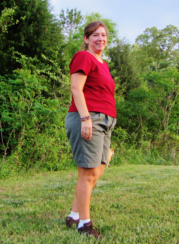 I feel like I've made leaps and bounds in my career wear and dressier clothing. This weekend convinced me that I need to address casual summer wear next. I was severely clothing-challenged this weekend and often looked, well, rather odd. Here's a prime example. I grabbed some shorts that I think turned out to be hand-me-downs from my dad. All that extra room in the front? Not really necessary for a woman and not at all flattering. These are going in the give-away pile! I tried to hurriedly put together some casual warm weather outfits while not being overly dressy. Somehow I ended up never getting it quite right. Last night I changed out of my Easter dress into trouser jeans because we were going to a casual